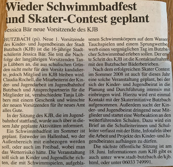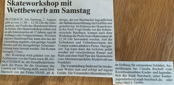 13.06.2026 | Skateboard Anfänger-Workshop und Eröffnungsfeier am neuen Butzbacher Skatepark (Soccer-Arena, Werner-von-Siemens-Straße 2) |